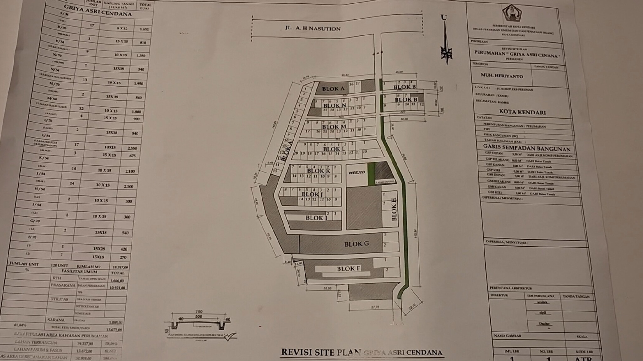 Revisi site plan (tapak jejak) terbaru kawasan perumahan Jl Martandu, Kelurahan Anduonohu, Kecamatan Poasia, Kota Kendari, Sulawesi Tenggara (Sultra) yang belum disahkan. (Foto: Fadli Aksar)