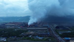 Asap putih tebal keluar dari salah satu pabrik peleburan nikel PT Obsidian Stainless Steel. (Foto: Walhi Sultra)